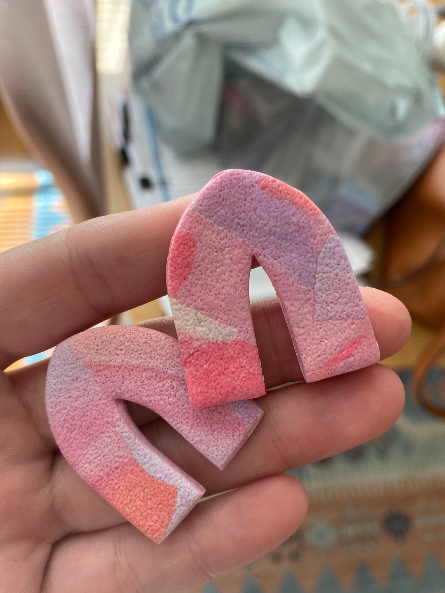 Lightweight polymer clay on a nickel free stud.